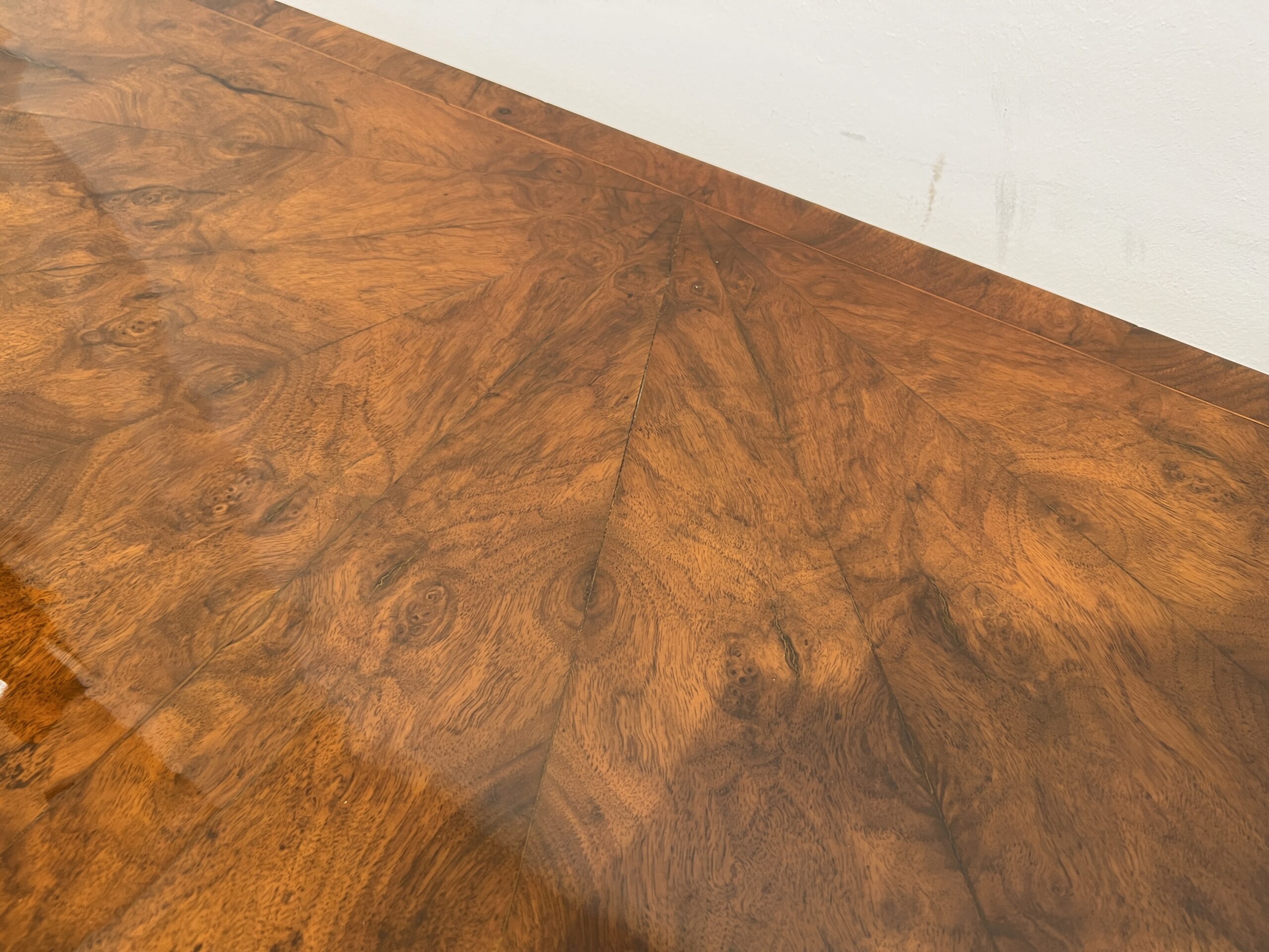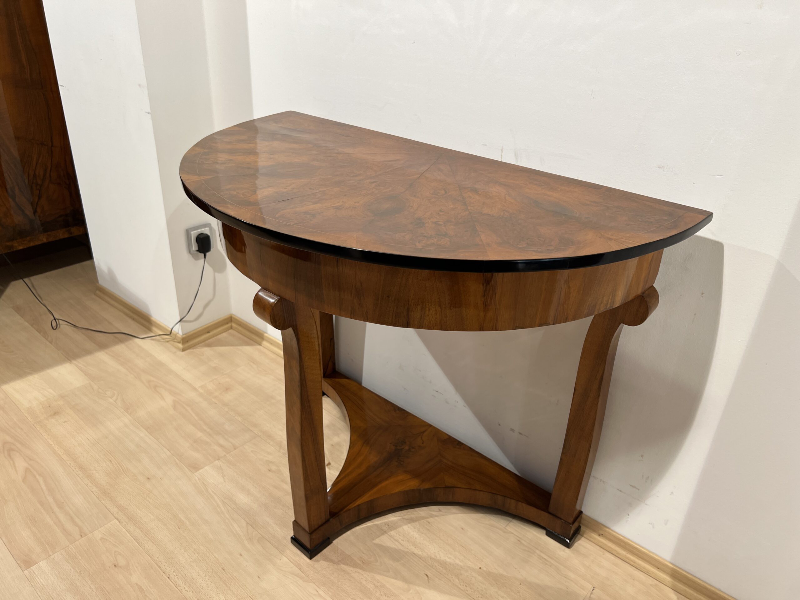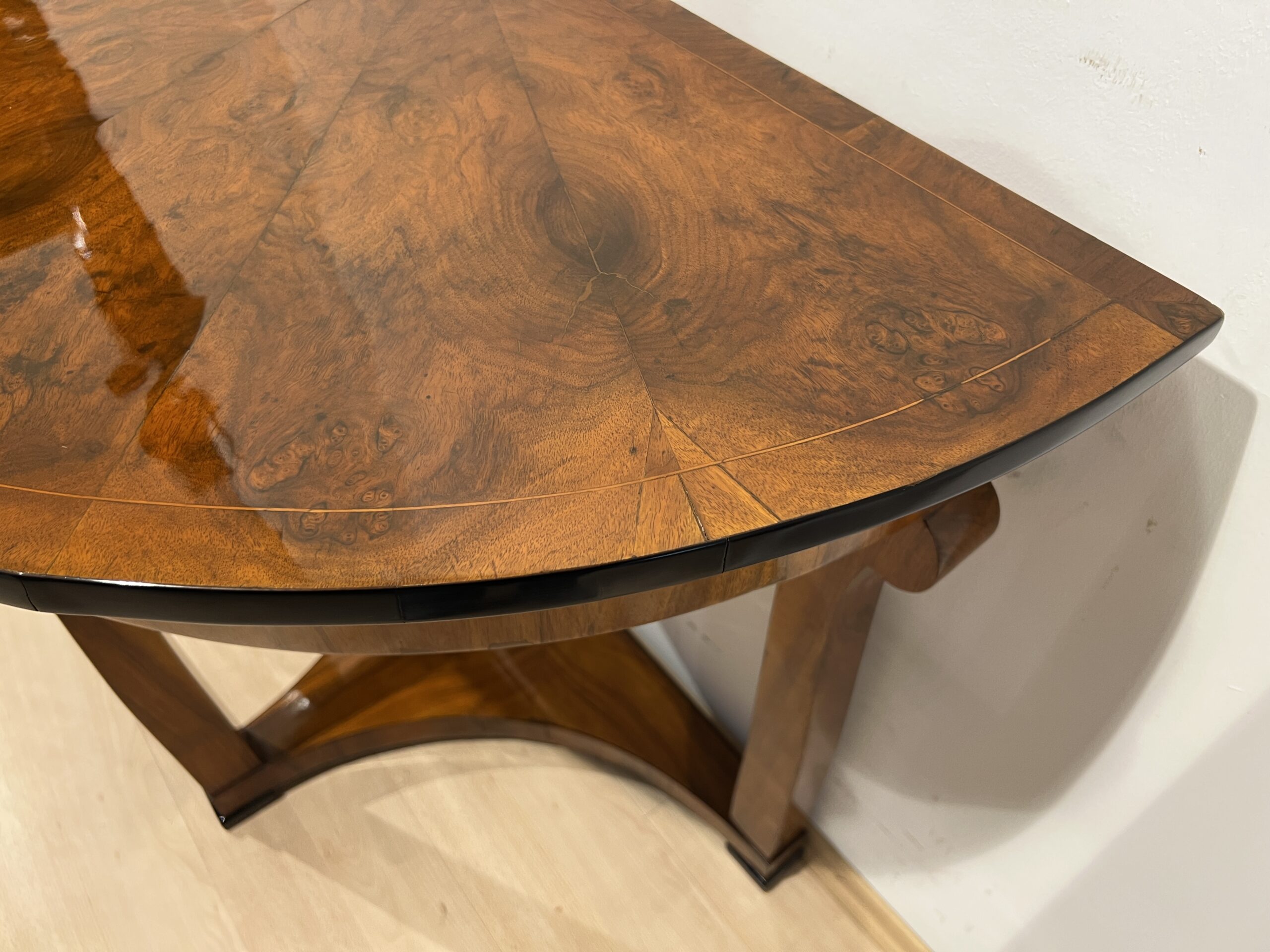 - Half round top in walnut star veneered and maple inlay band