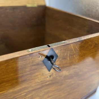 • Original brass lock and hinges.