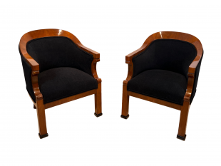 Verkauft WeiterlesenPaar schöne Biedermeier Bergeren, Mitte 19. JH. Nussbaum furniert an den Lehnen und Nussbaum massive Beine. Zum Teil ebonisi…