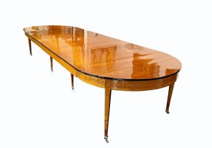 Verkauft WeiterlesenAusgefallen großer und seltener Biedermeier Ausziehtisch Kirsche furniert (Einlegeplatten und Zarge) und massiv (Runde Platt…