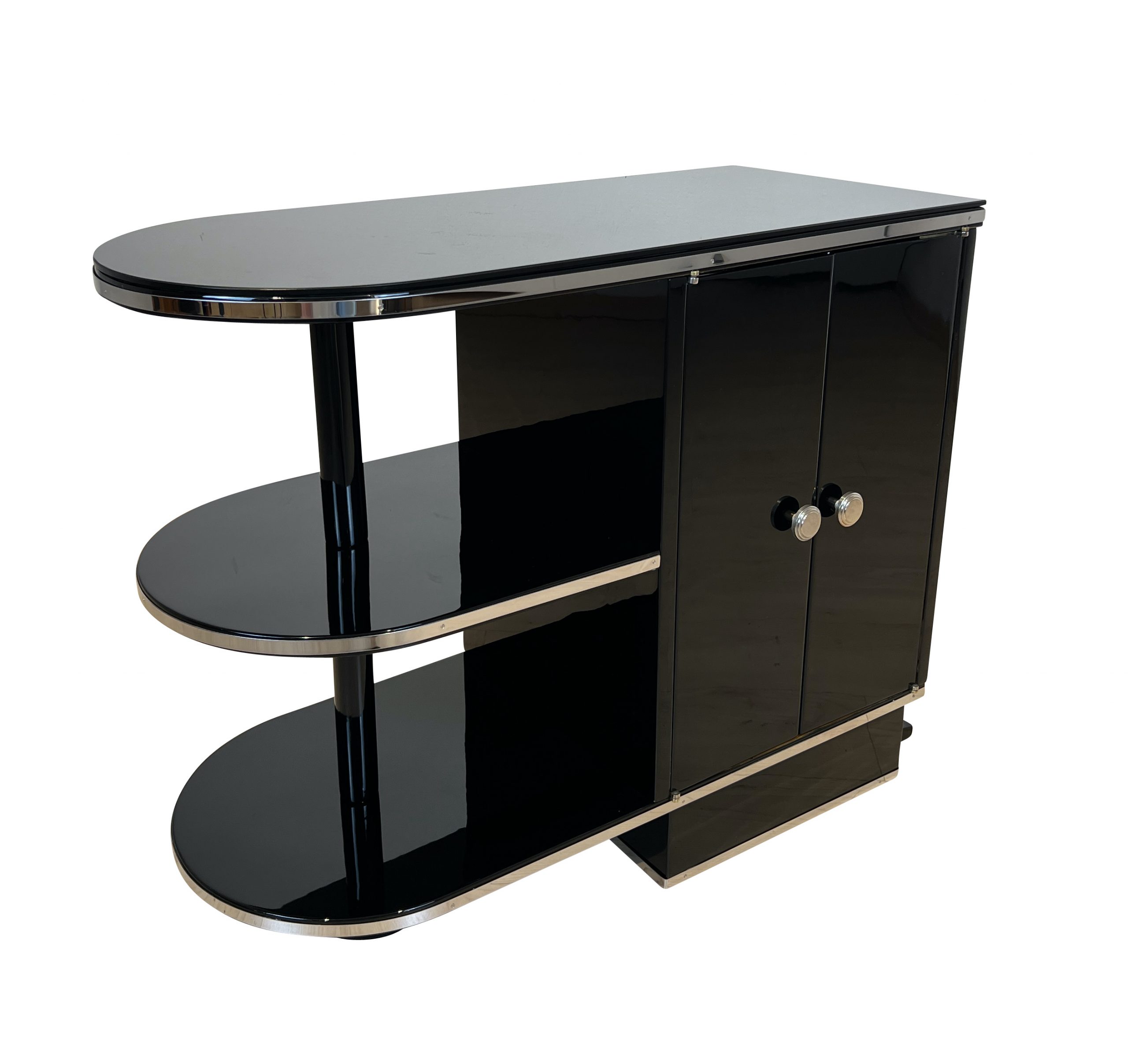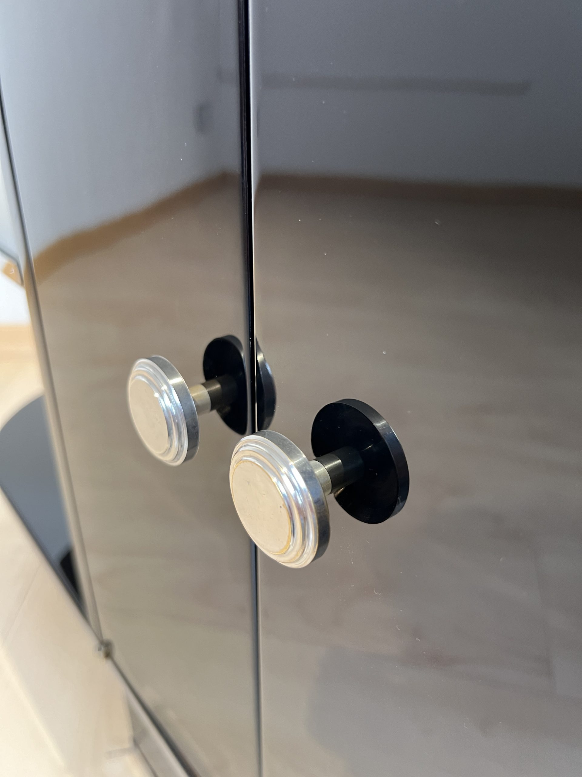 AD-KL-440 Kleines Art Deco Schränkchen, Schwarzlack, Frankreich um 1930