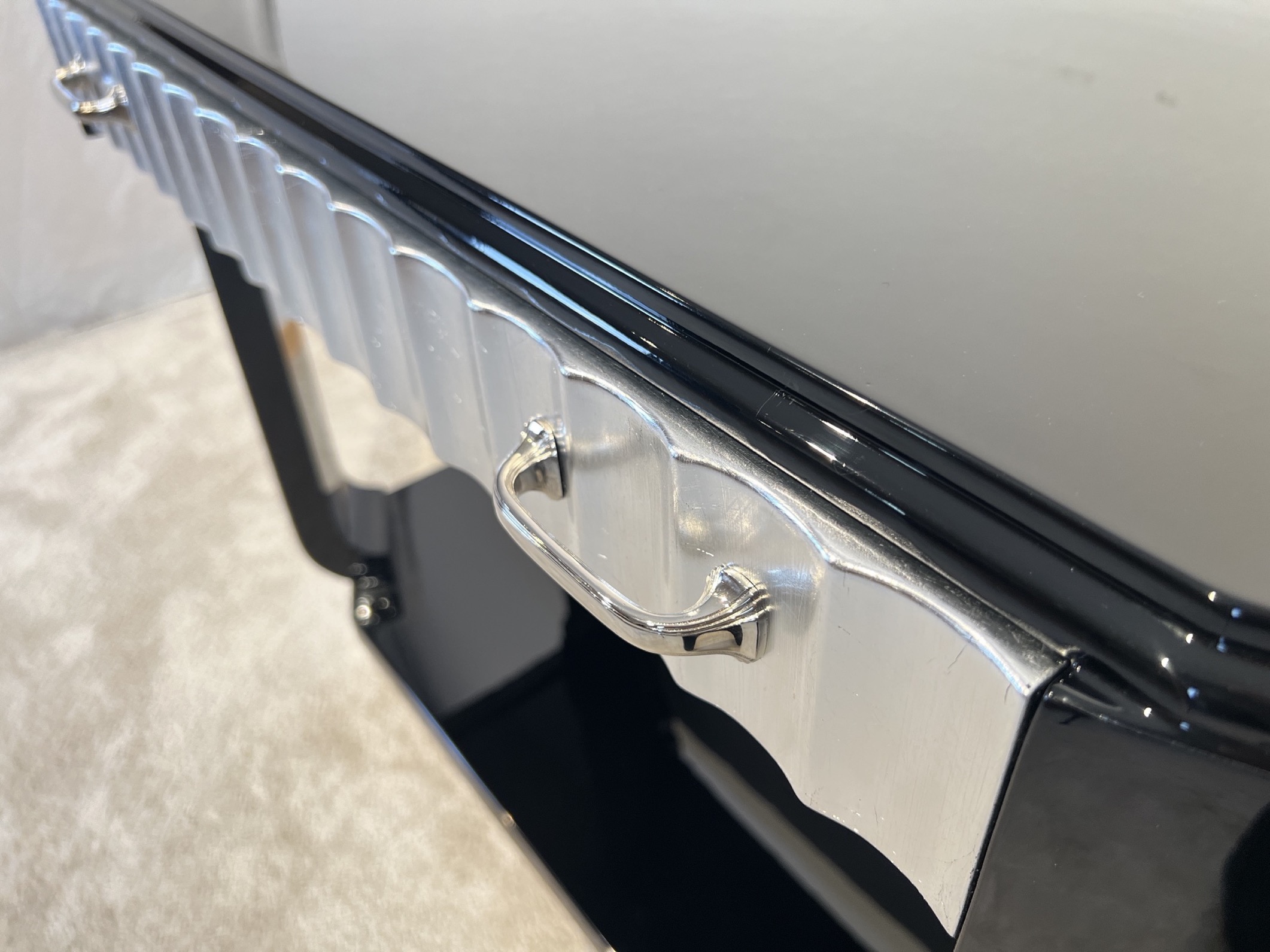 AD-KL-441 Art Deco Konsole, Schwarzlack und Blattsilber, Frankreich um 1930