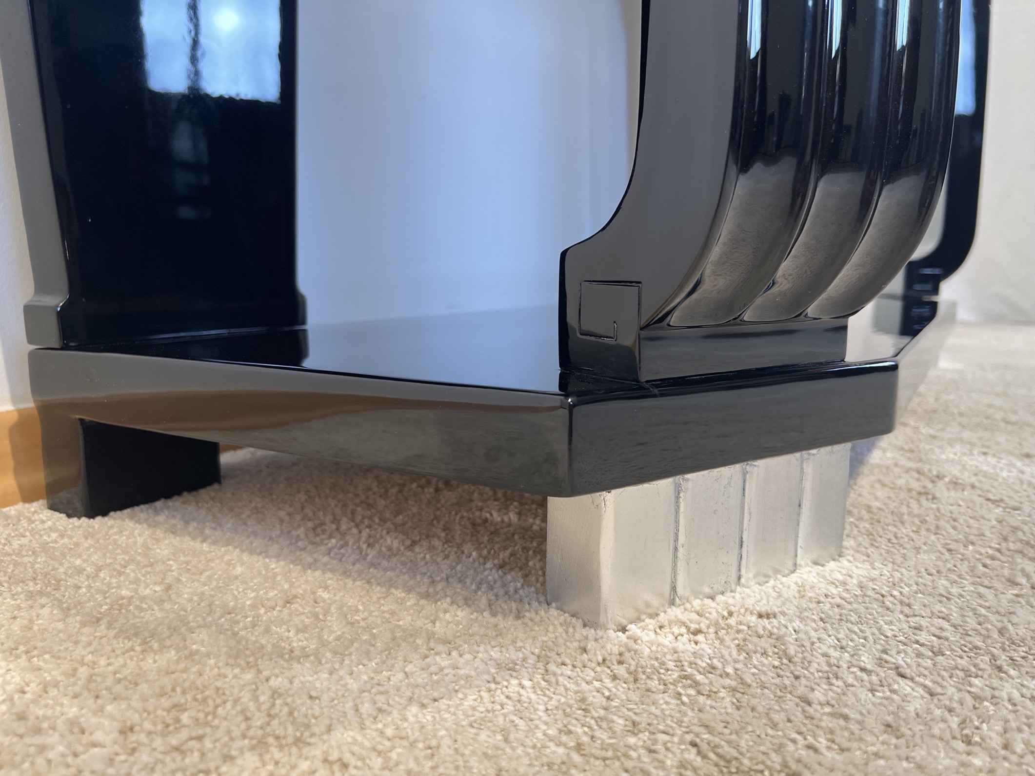 • Schwarzer Klavierlack, hochglänzend poliert.