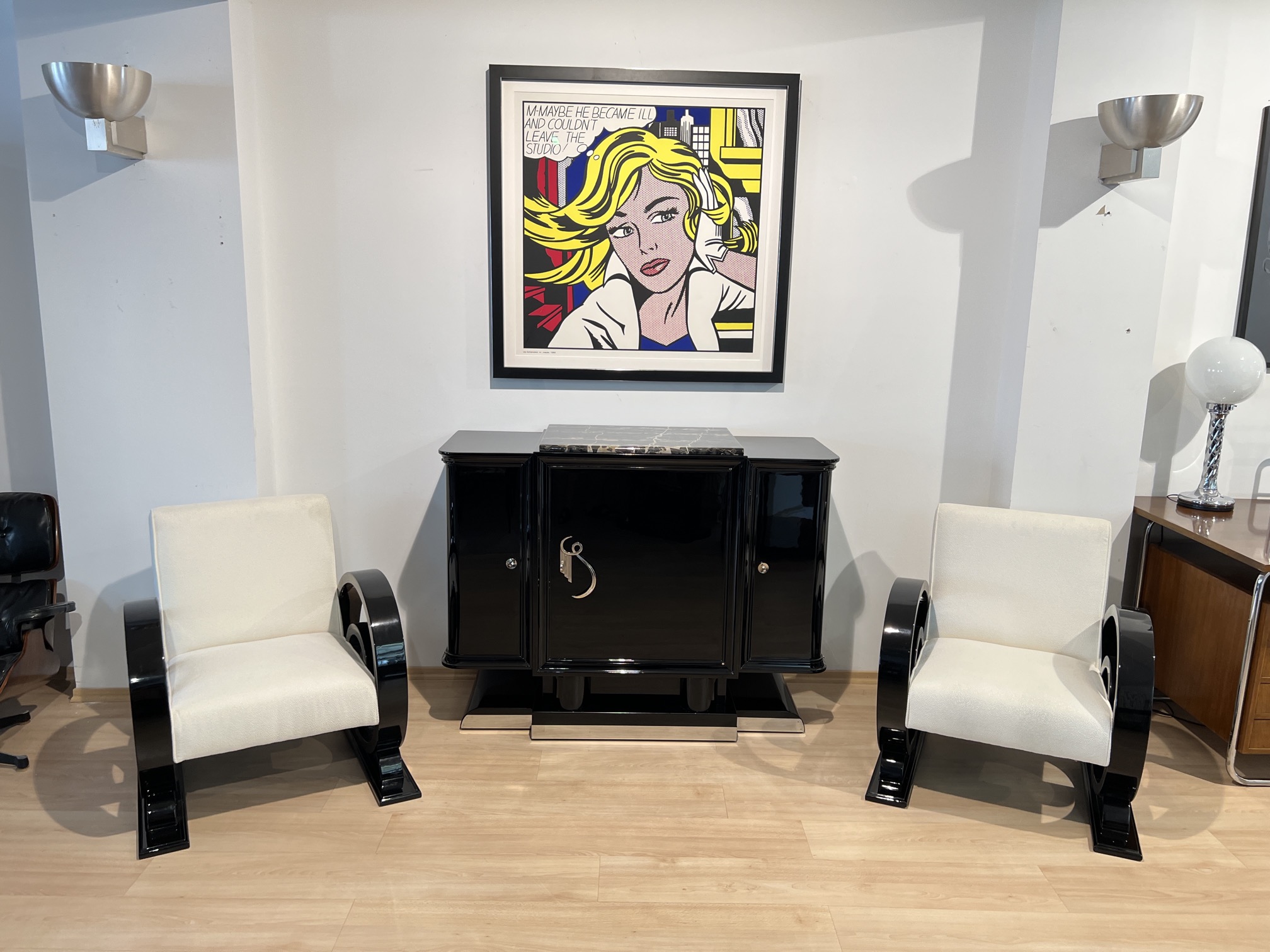 Kleines schwarzes Art Deco Sideboard oder Buffet aus Frankreich um 1930