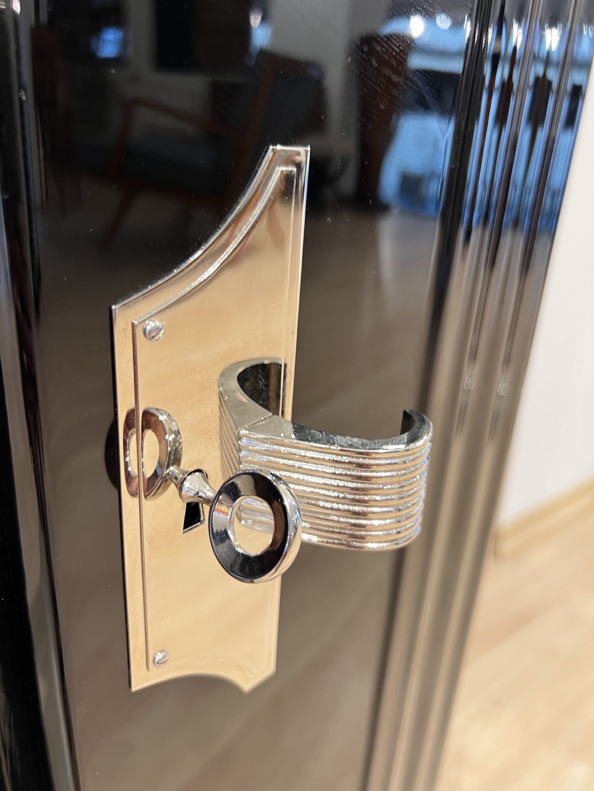 • Originale verchromte Beschläge mit darunterlegendem doppeltem Zierblech.