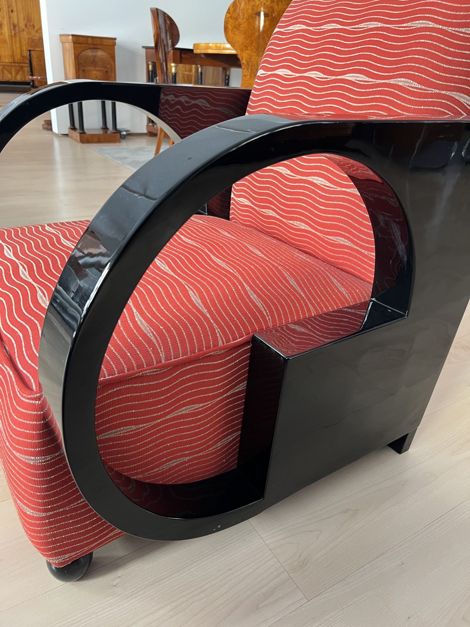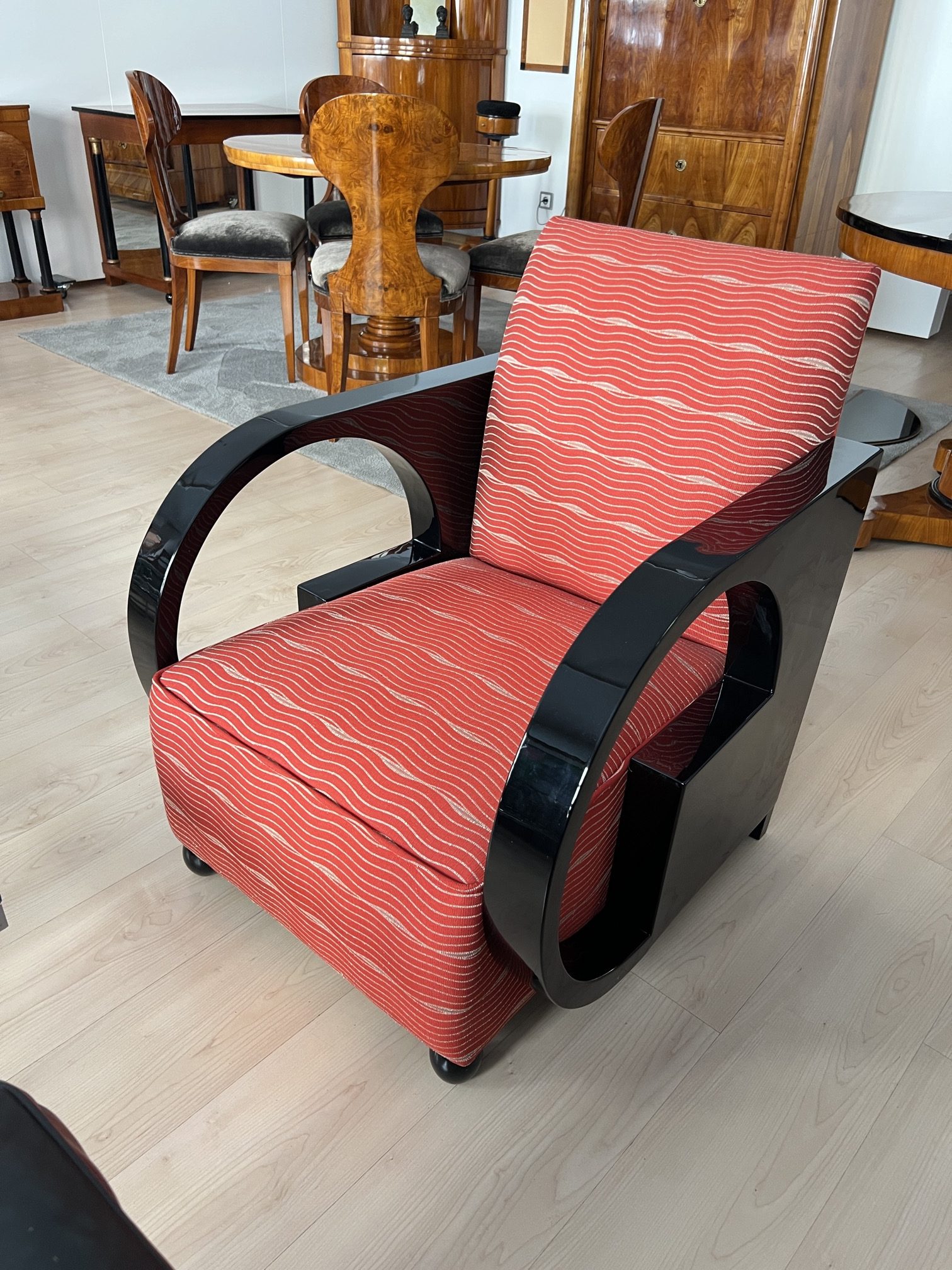 • Typisches Art Deco Modell mit gebogenen Armlehnen