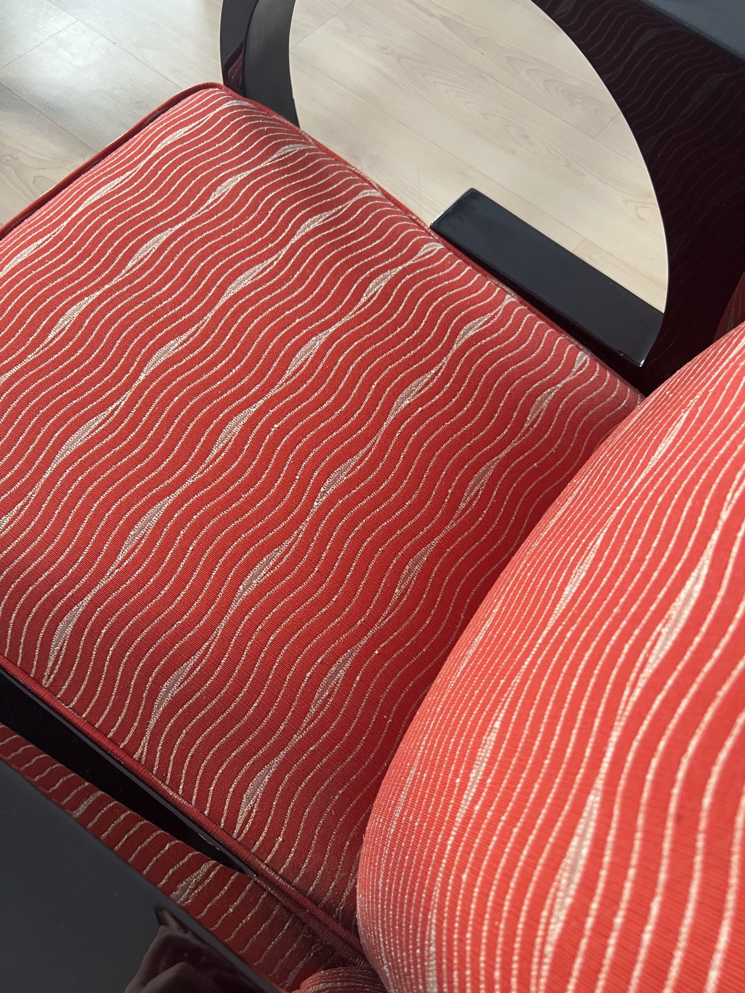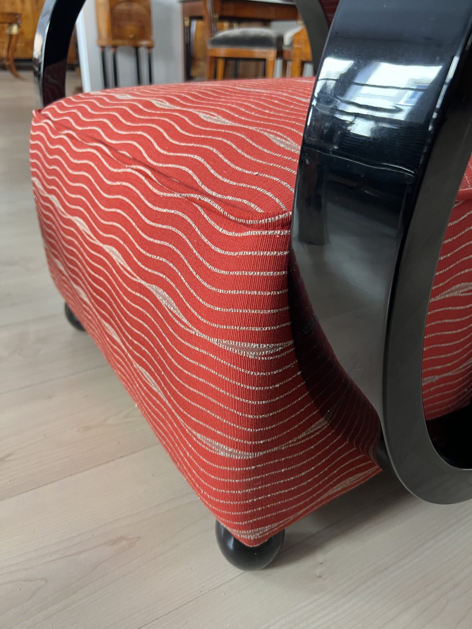 • Roter Bezugsstoff der Fa. Backhausen / Wiener Werkstätten (Design Josef Hoffmannn)