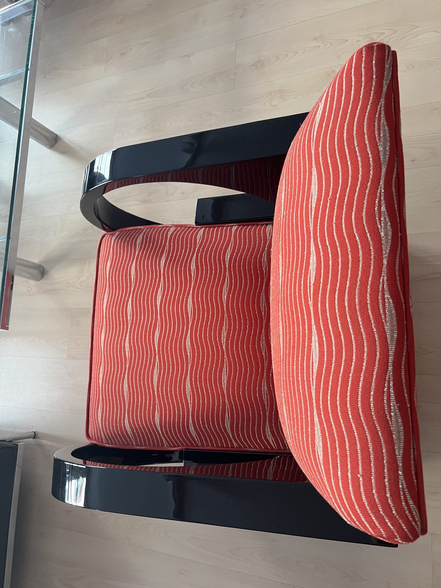AD-SI-469 Art Deco Clubsessel, Schwarzer Klavierlack, Roter Bezug, Frankreich um 1930