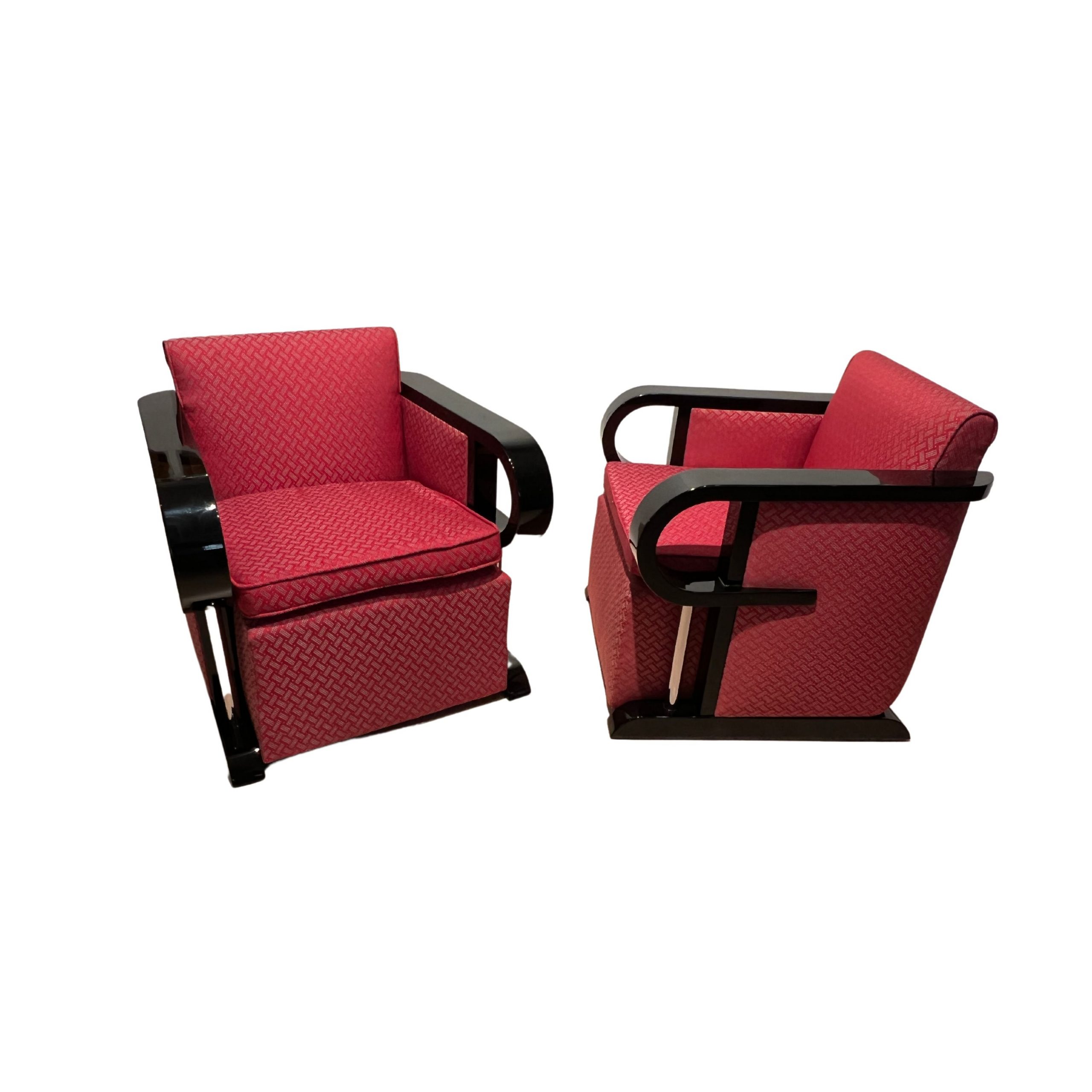 AD-SI-519 Paar Art Deco Club Sessel, Klavierlack, Frankreich um 1930