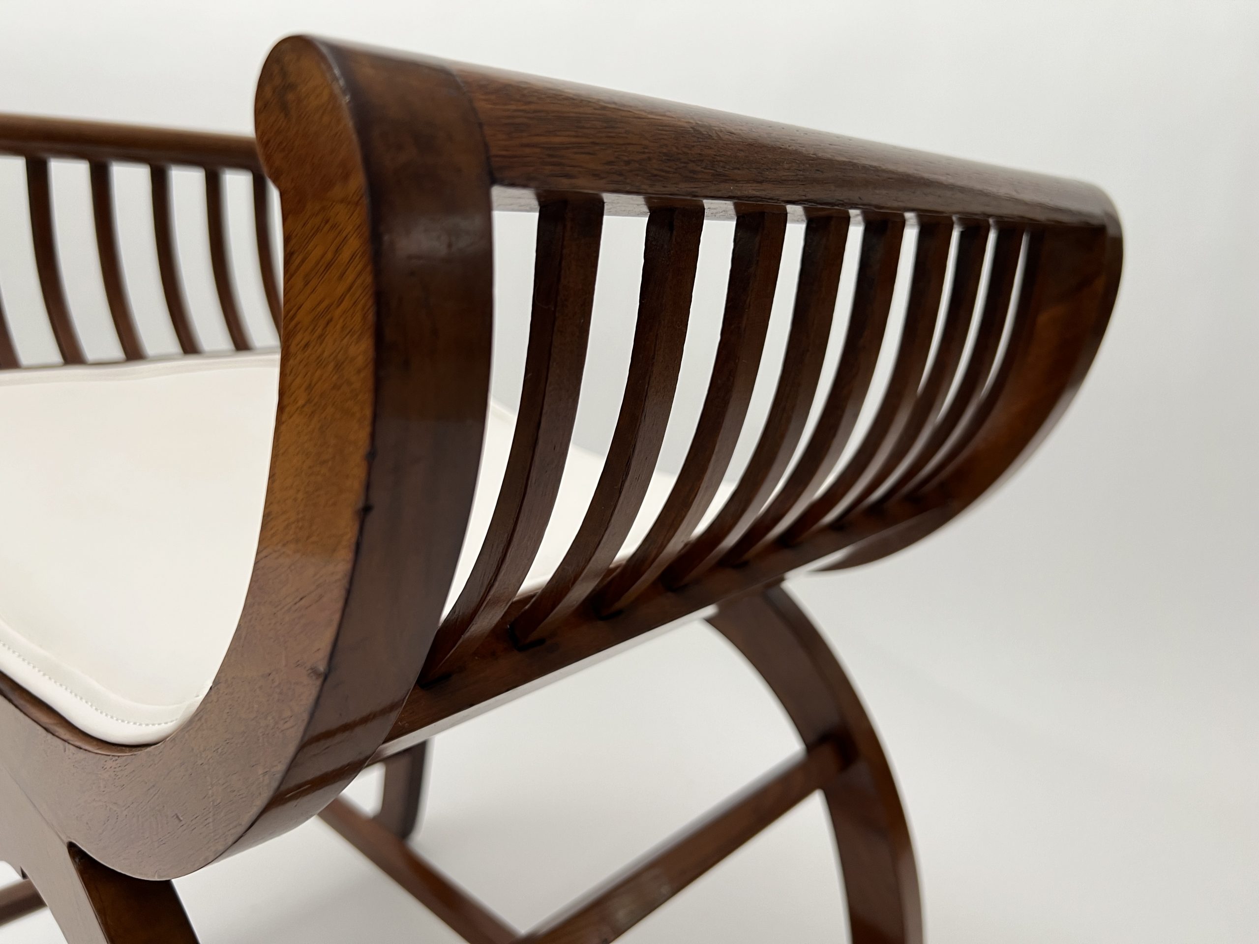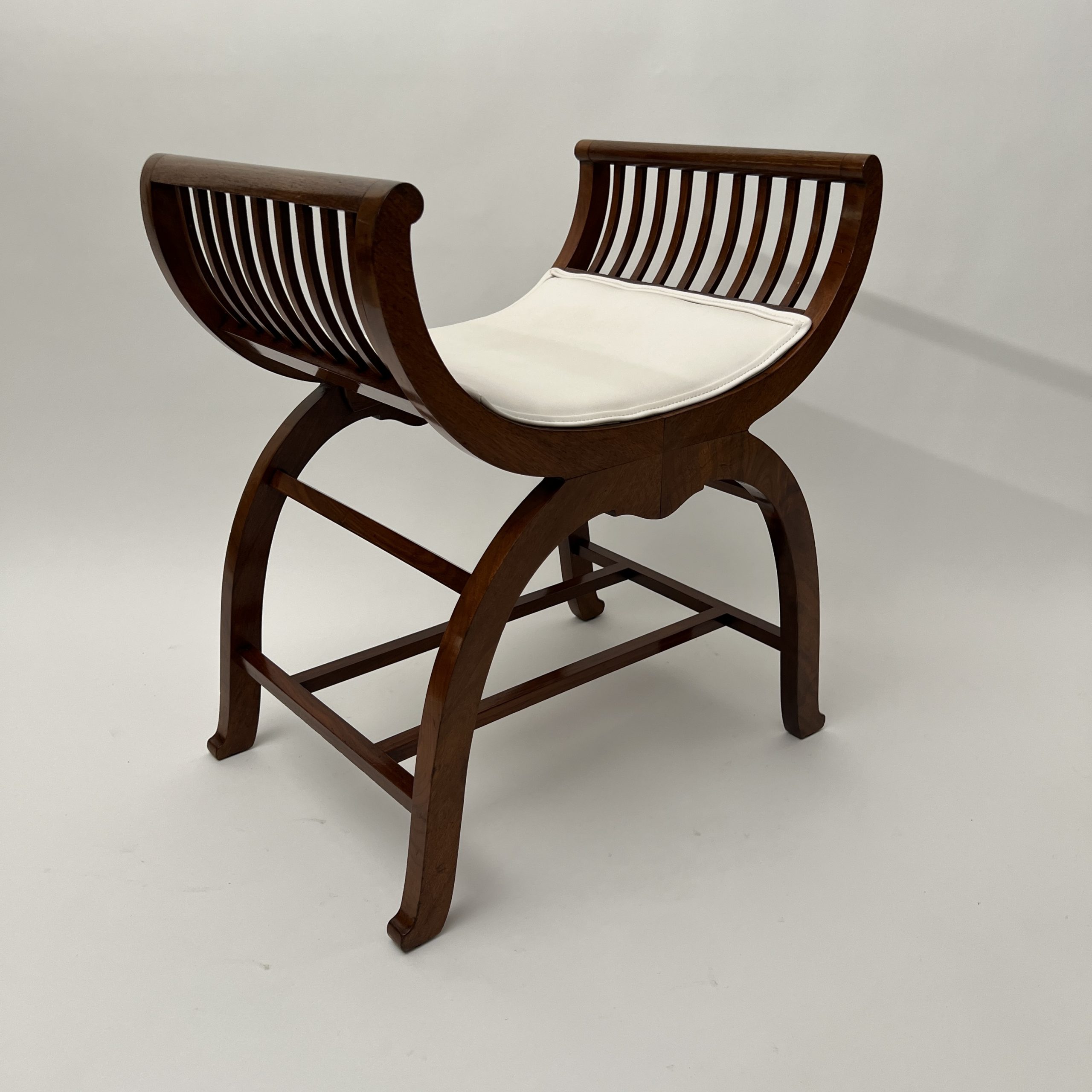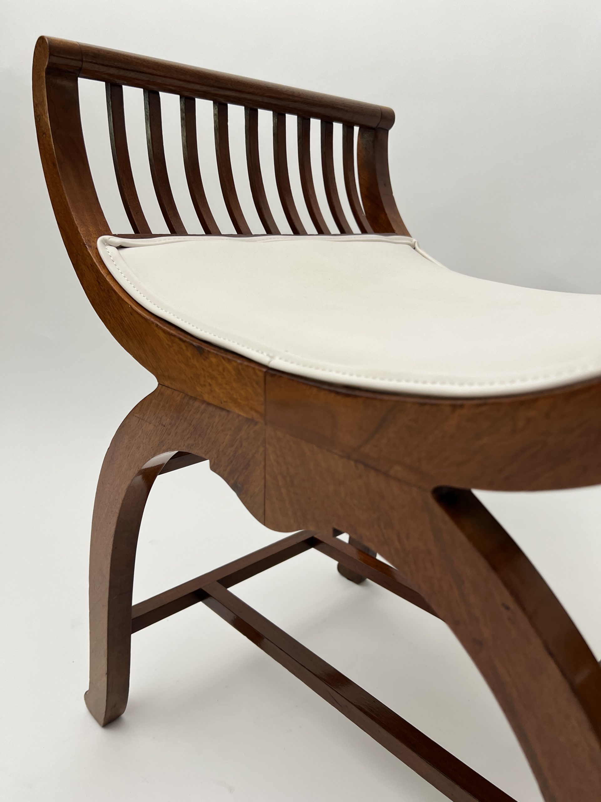AD-SI-542 Jugendstil Gondel Hocker, Nussbaum, Eiche, Österreich um 1910