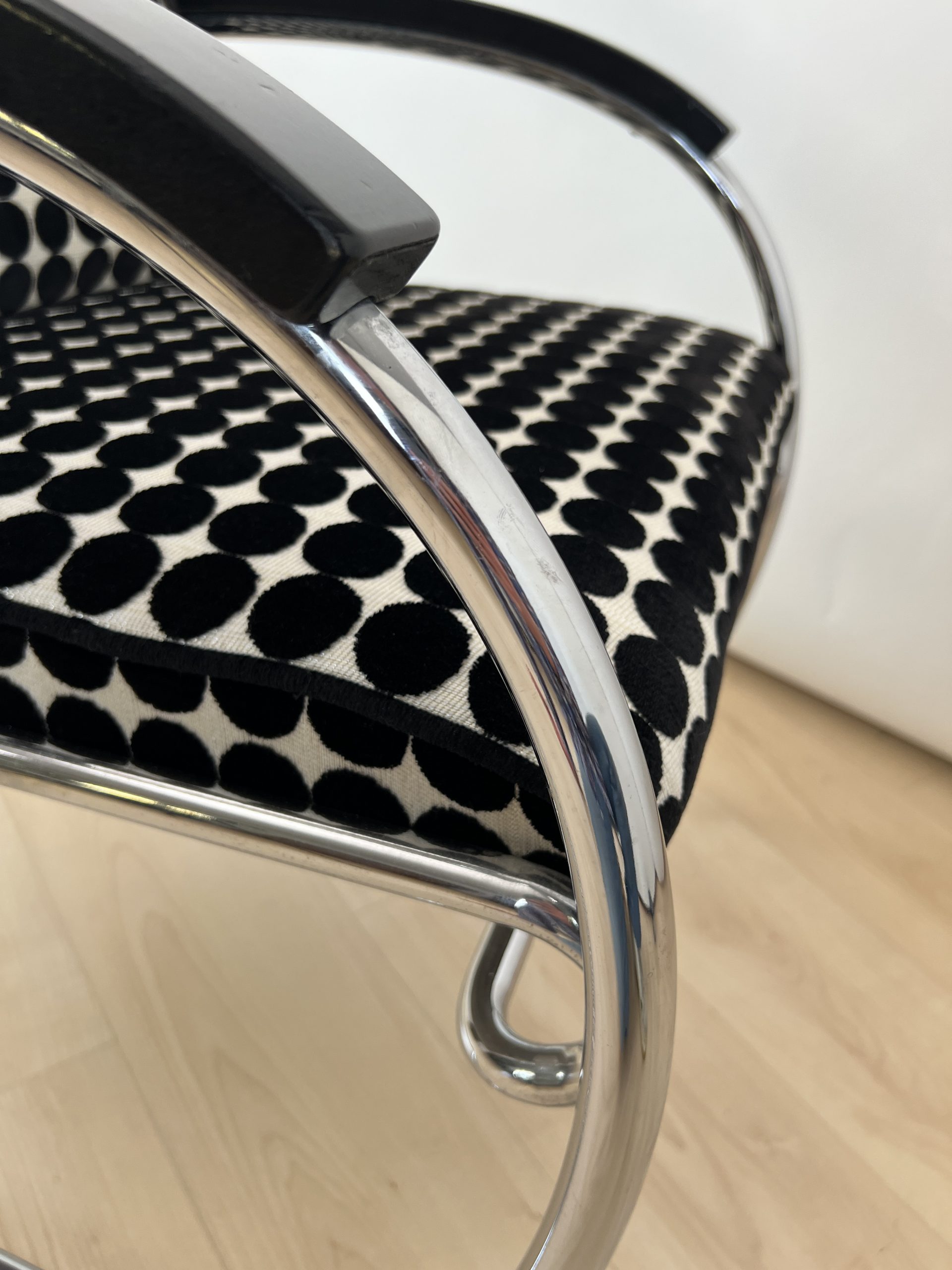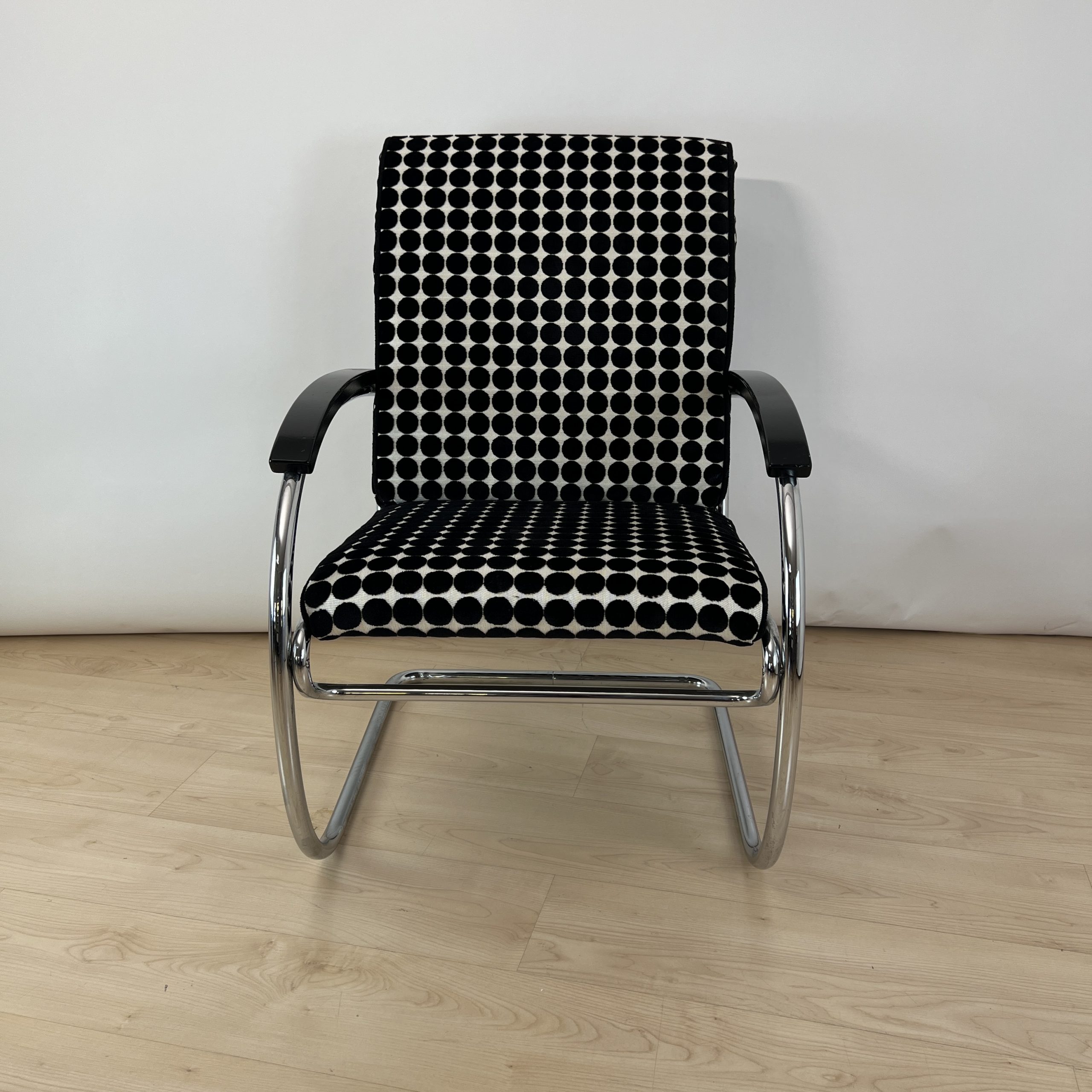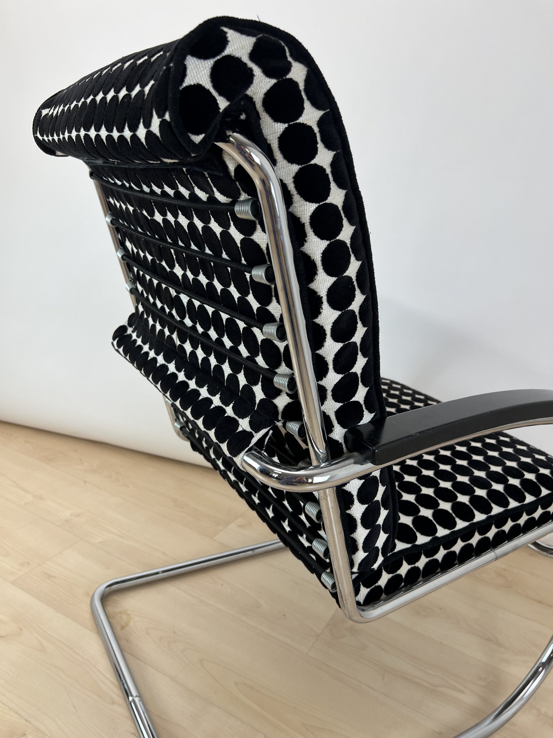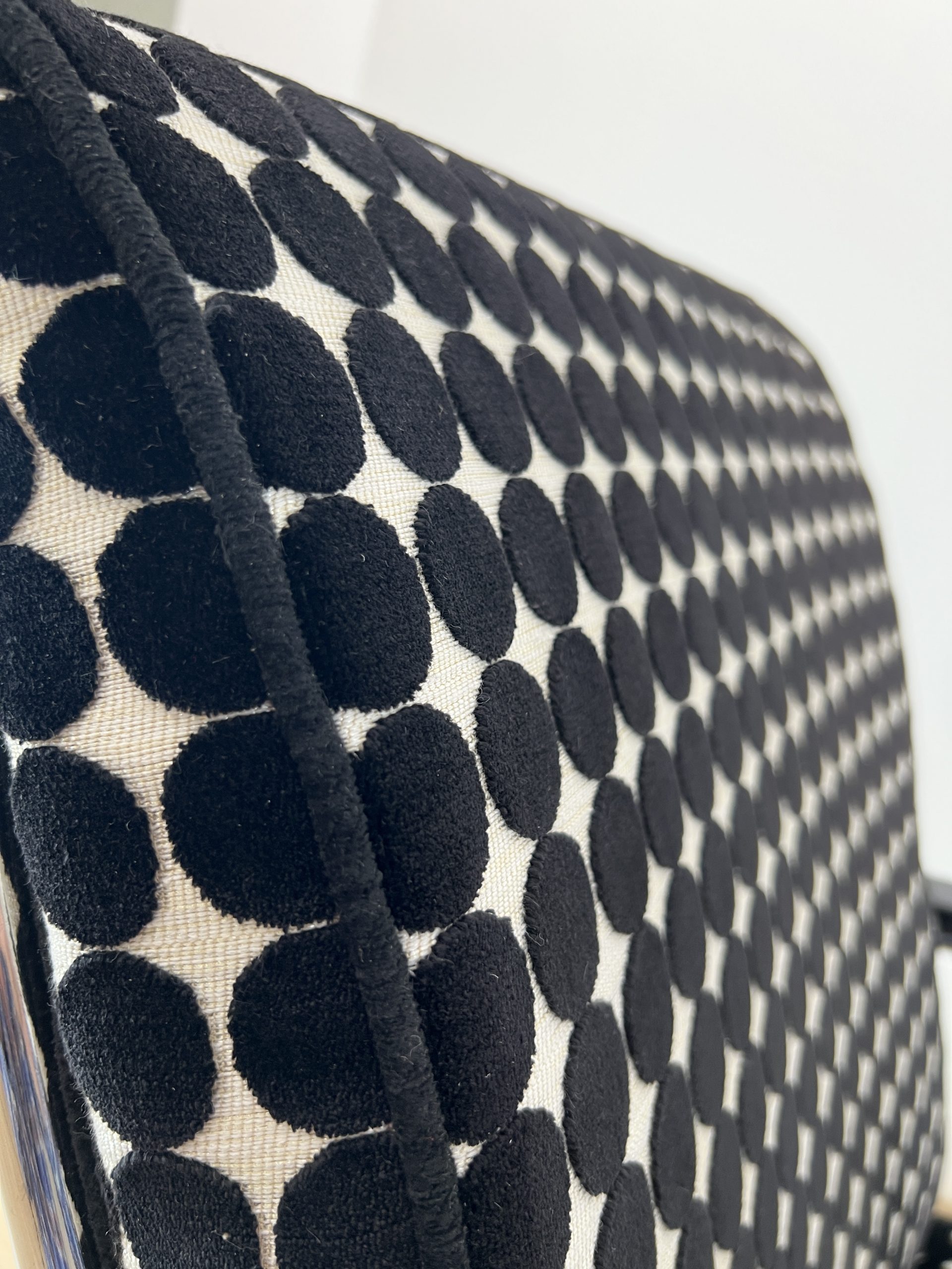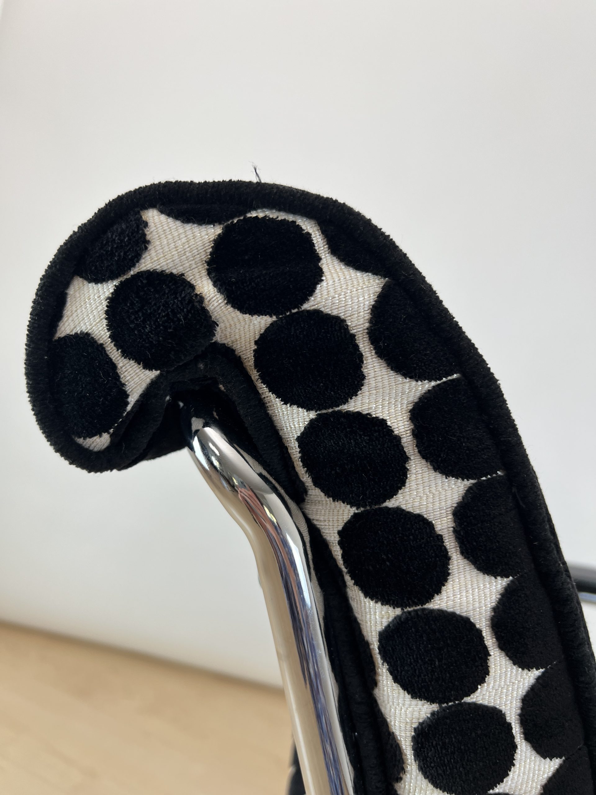 • Neu gepolstert mit schwarz weiß gepunktetem Samtstoff von JAB.