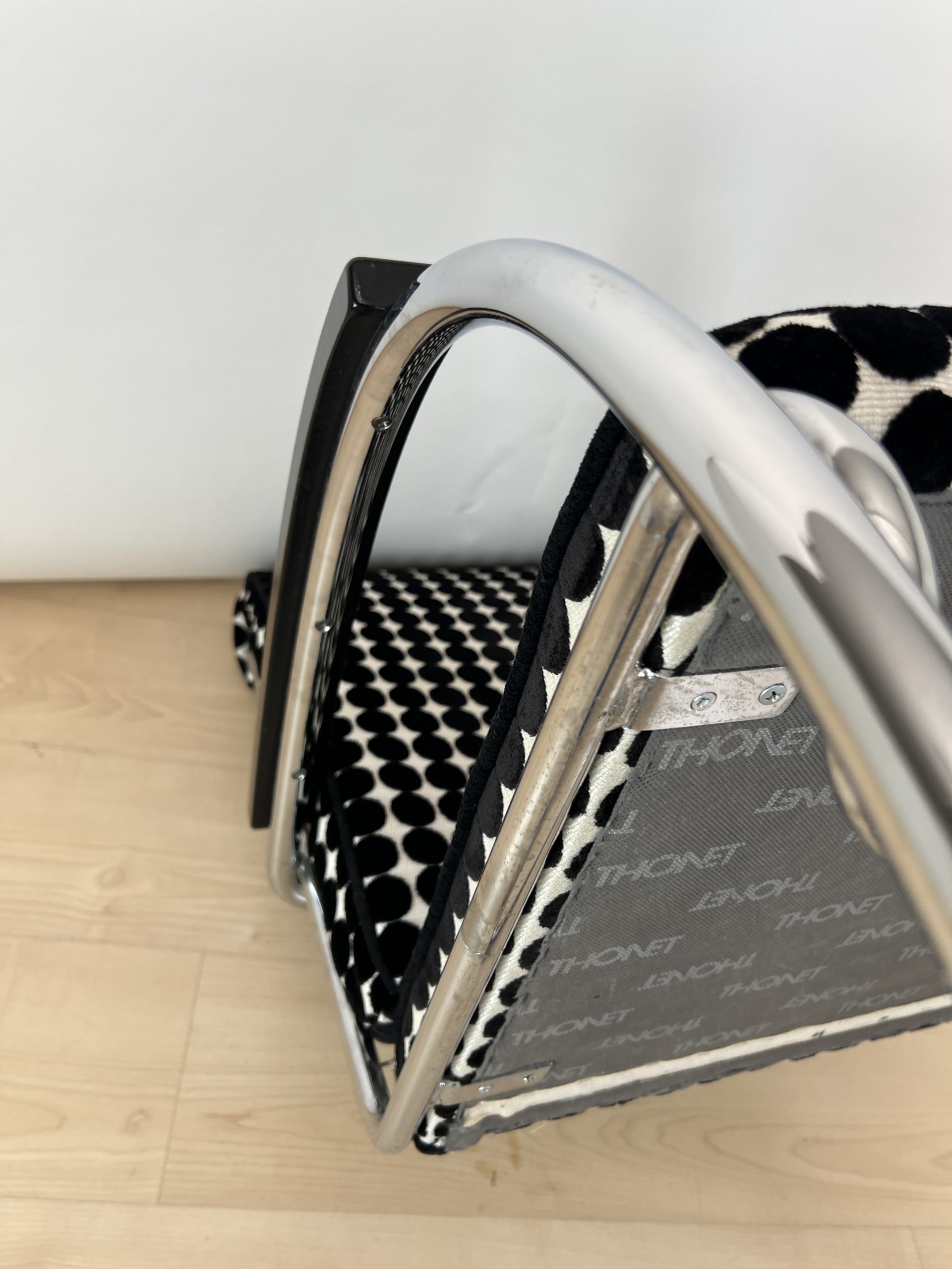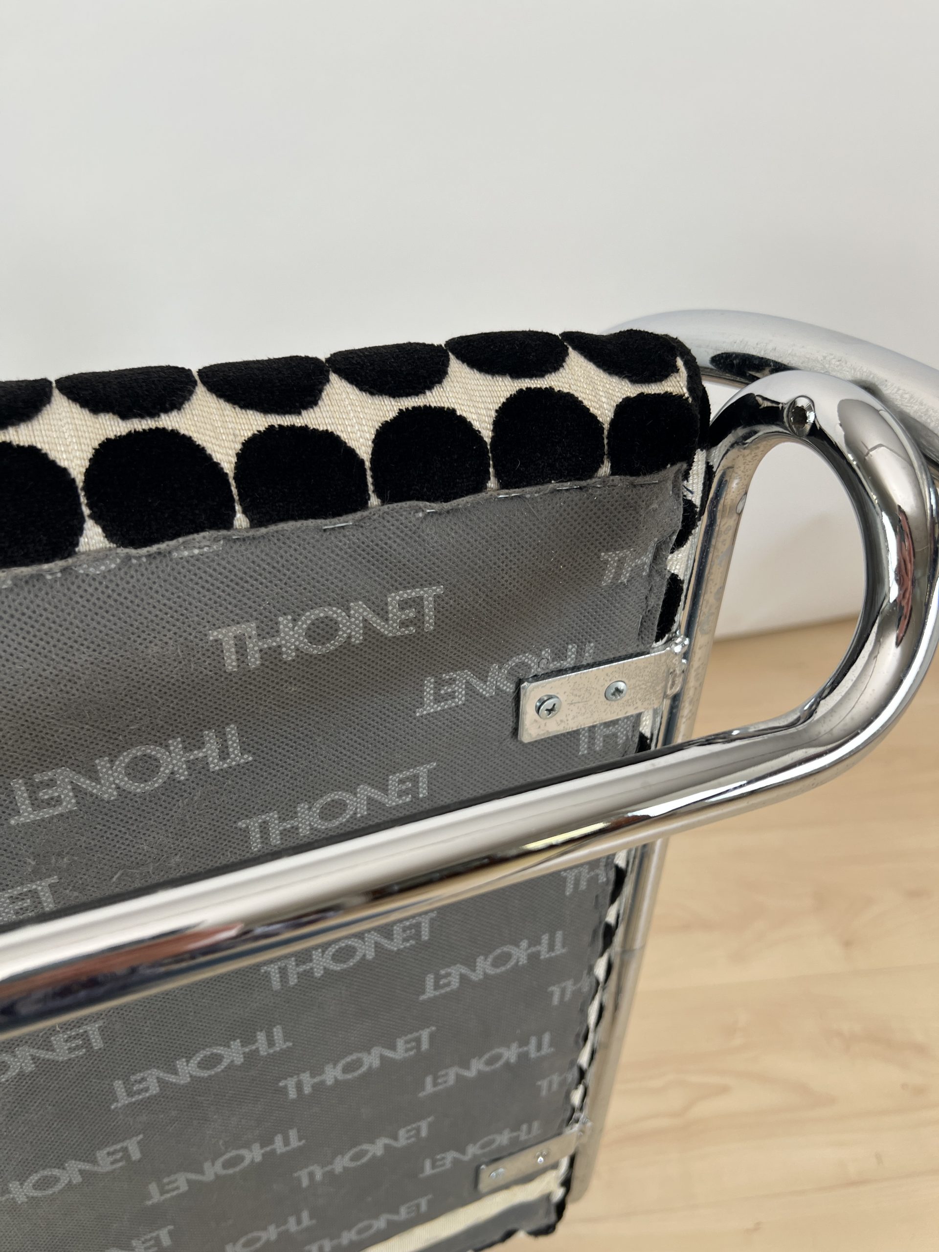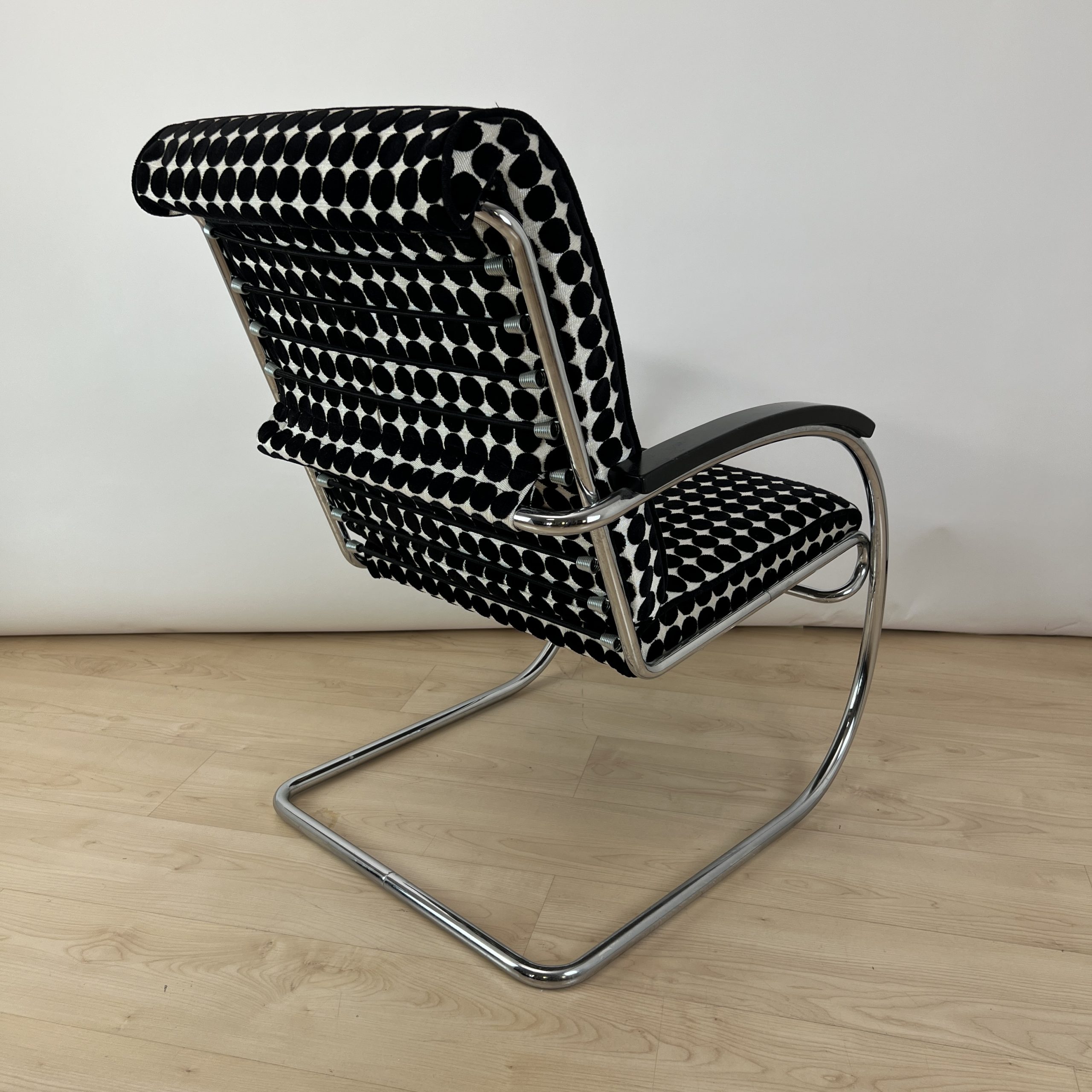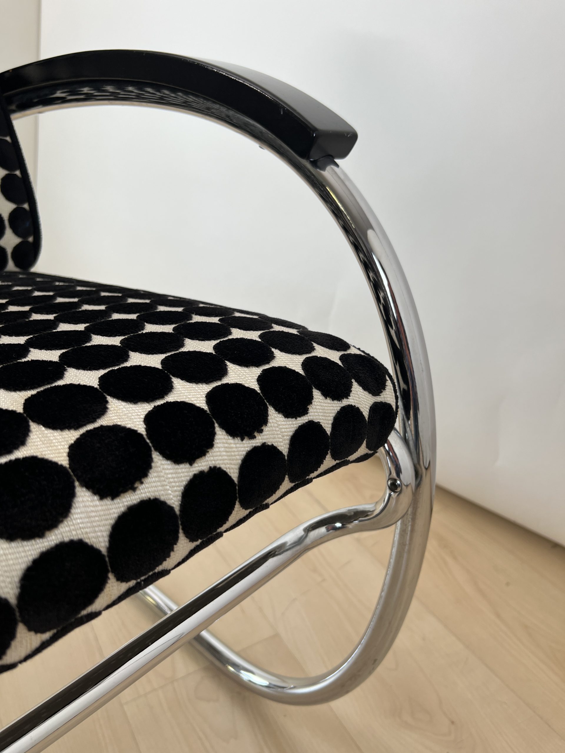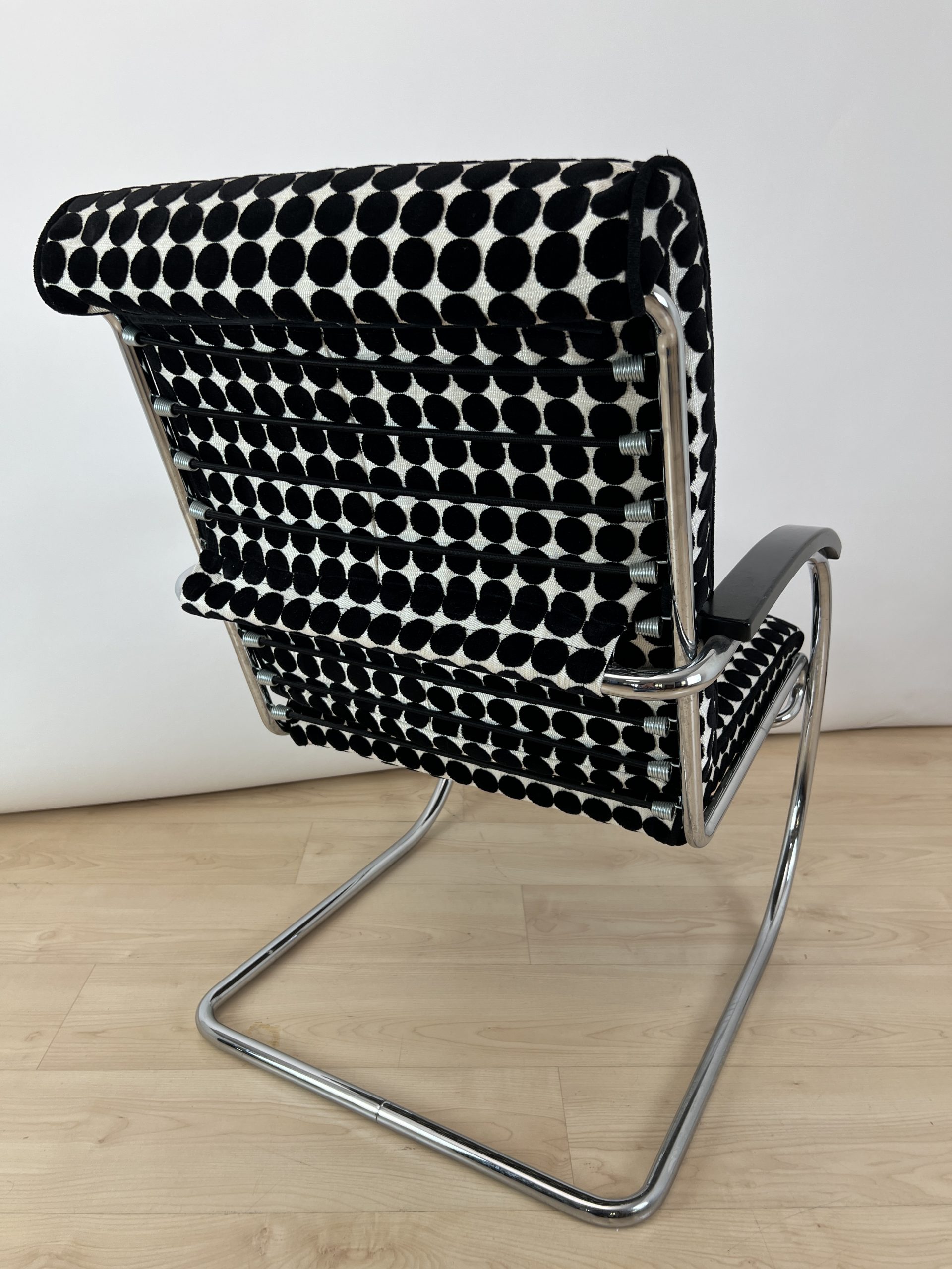 • Neu gepolstert mit schwarz weiß gepunktetem Samtstoff von JAB.