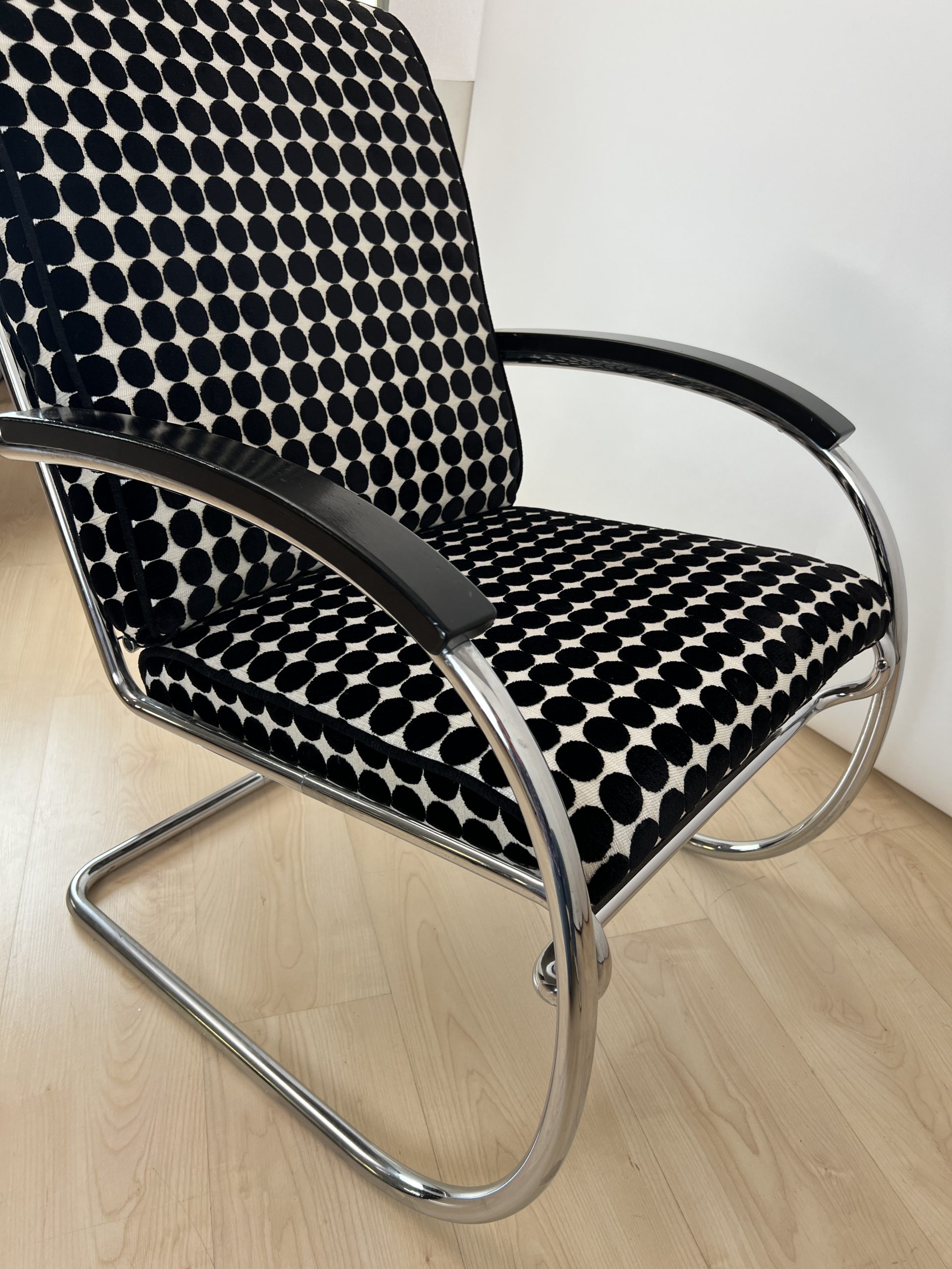 AD-SI-544 Bauhaus Armlehnsessel ‚KS 46’ von Thonet, Stahlrohr, Samtstoff, Deutschland, 1932