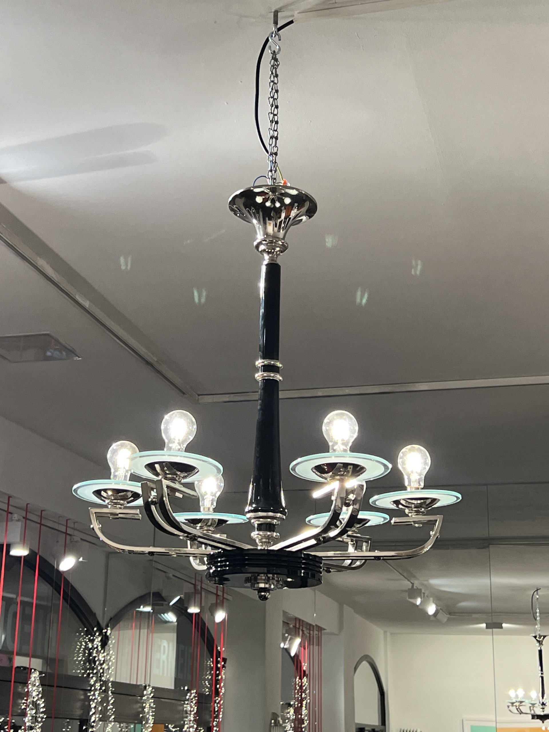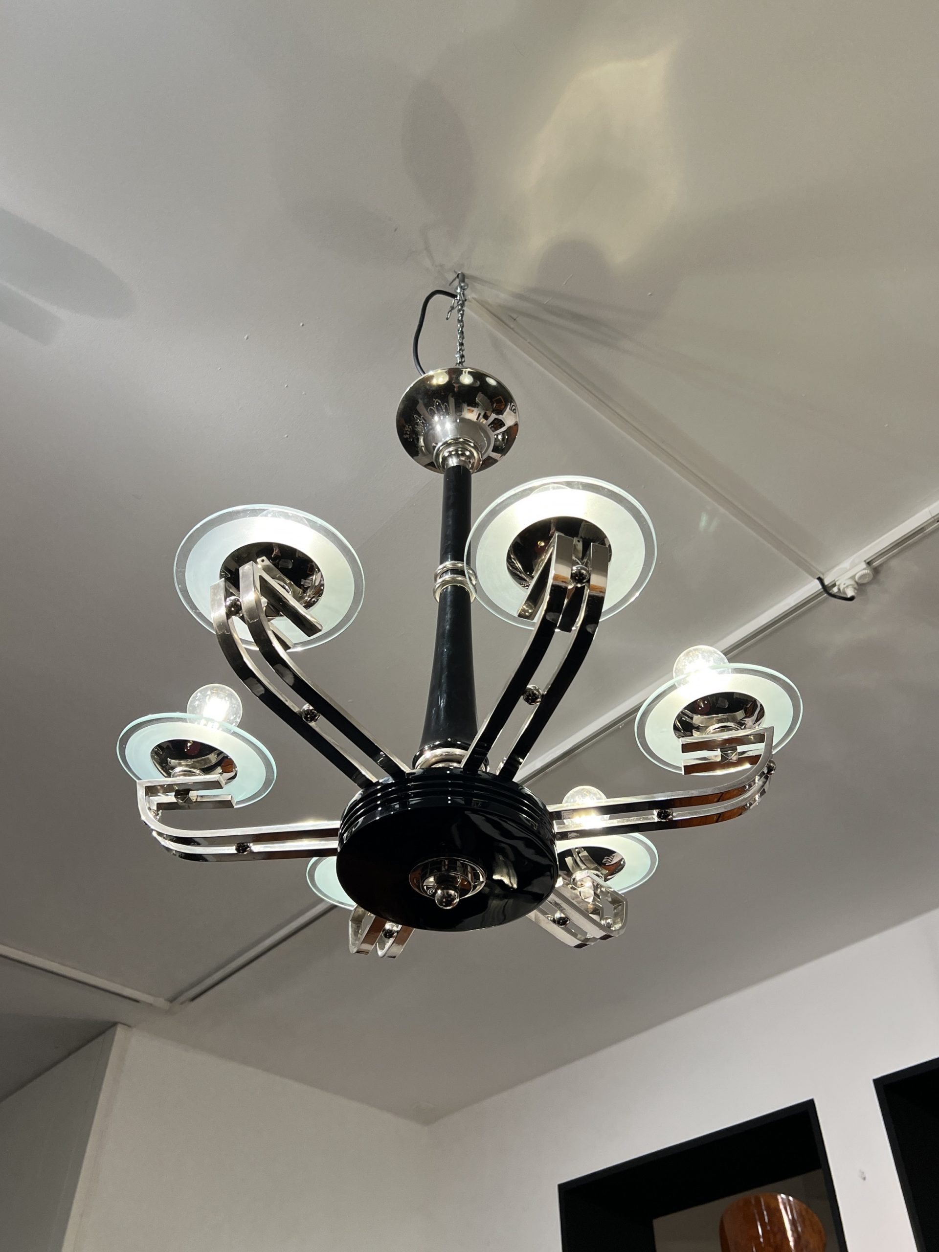 AD-SO-492 Art Deco Deckenlampe, Schwarzlack, Chrom, Glas, Frankreich um 1930