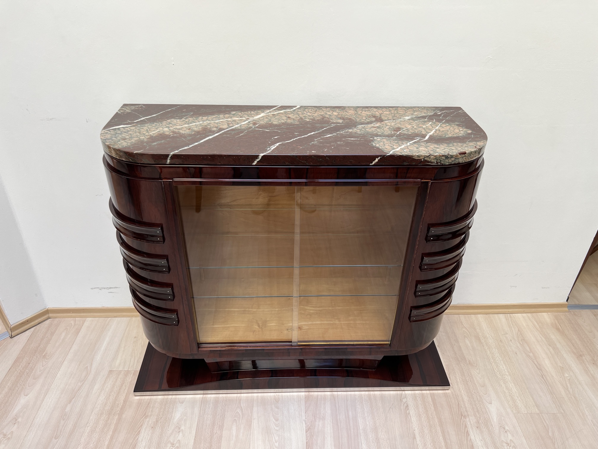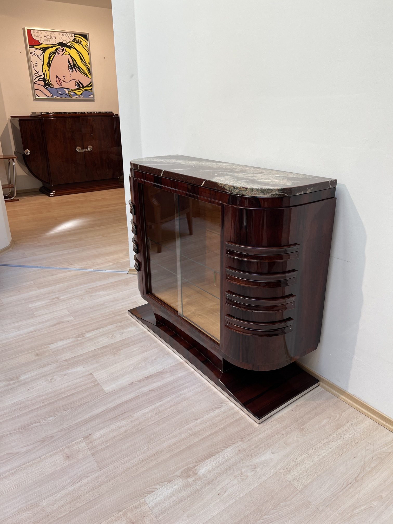 Elegante, niedrige Art Deco Vitrine in Palisanderholz aus Frankreich um 1930.
