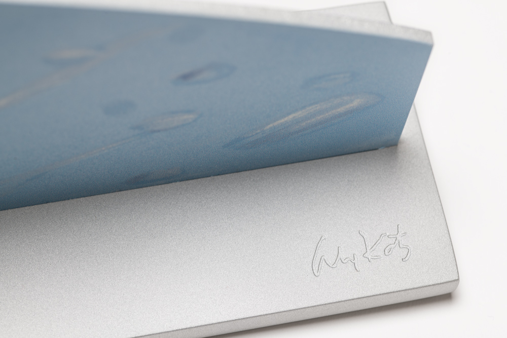 Medium: Cutout aus geformtem, pulverbeschichtetem Aluminium, beidseitig gleich bedruckt mit UV-gehärteten Archivtinten, klar beschichtet und auf einen 3/8-Zoll-Aluminiumsockel montiert