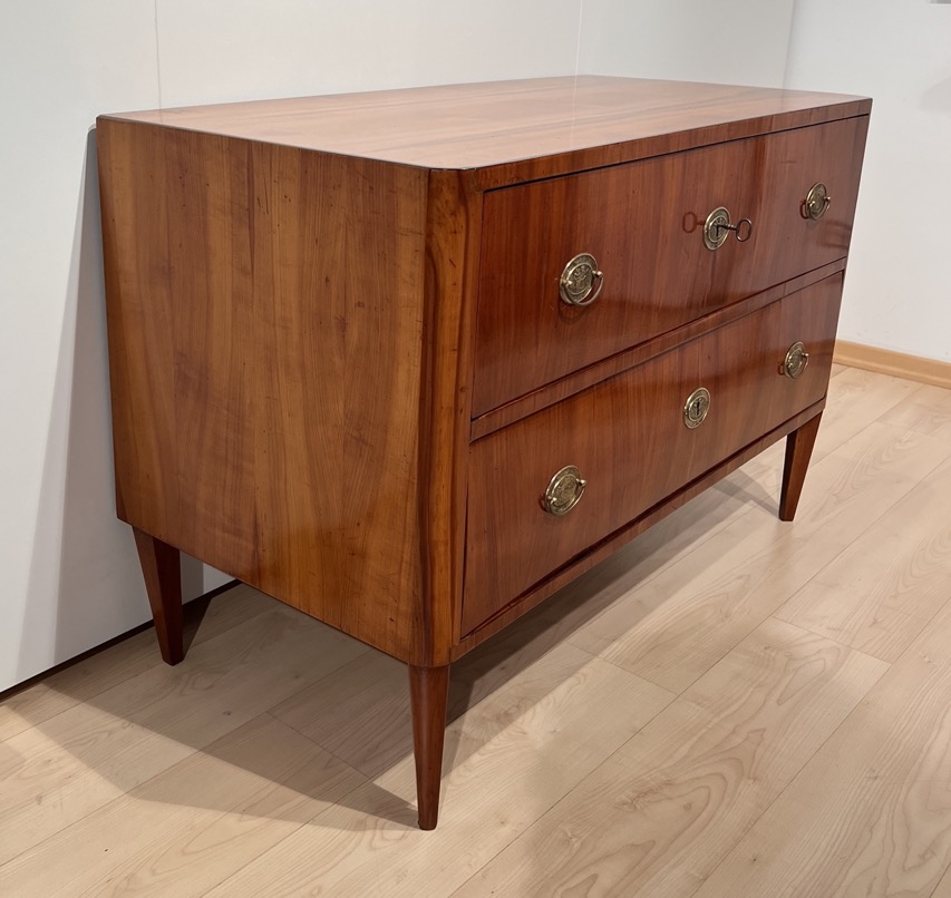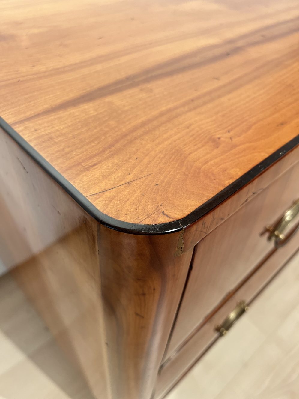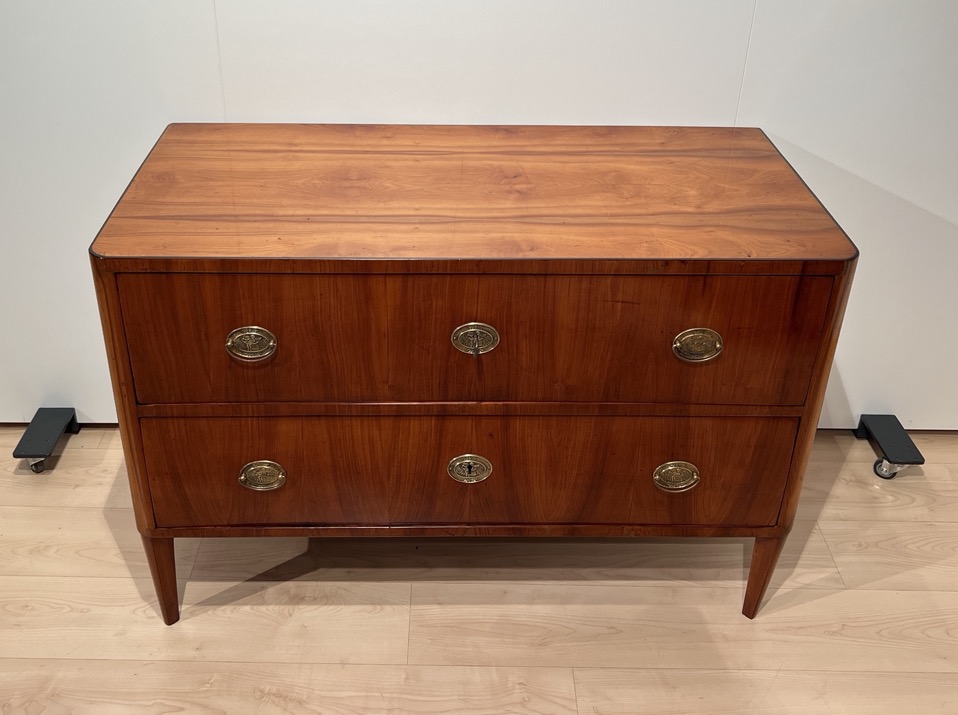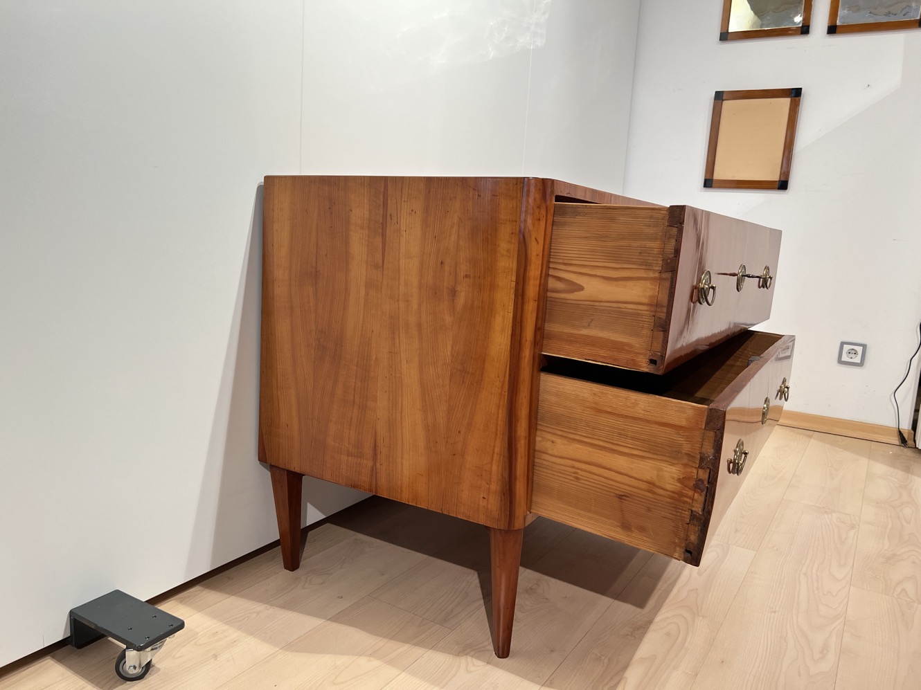 Schlichte, zwei schübige Biedermeier Kommode in Kirschbaum furniert aus Süddeutschland um 1820.