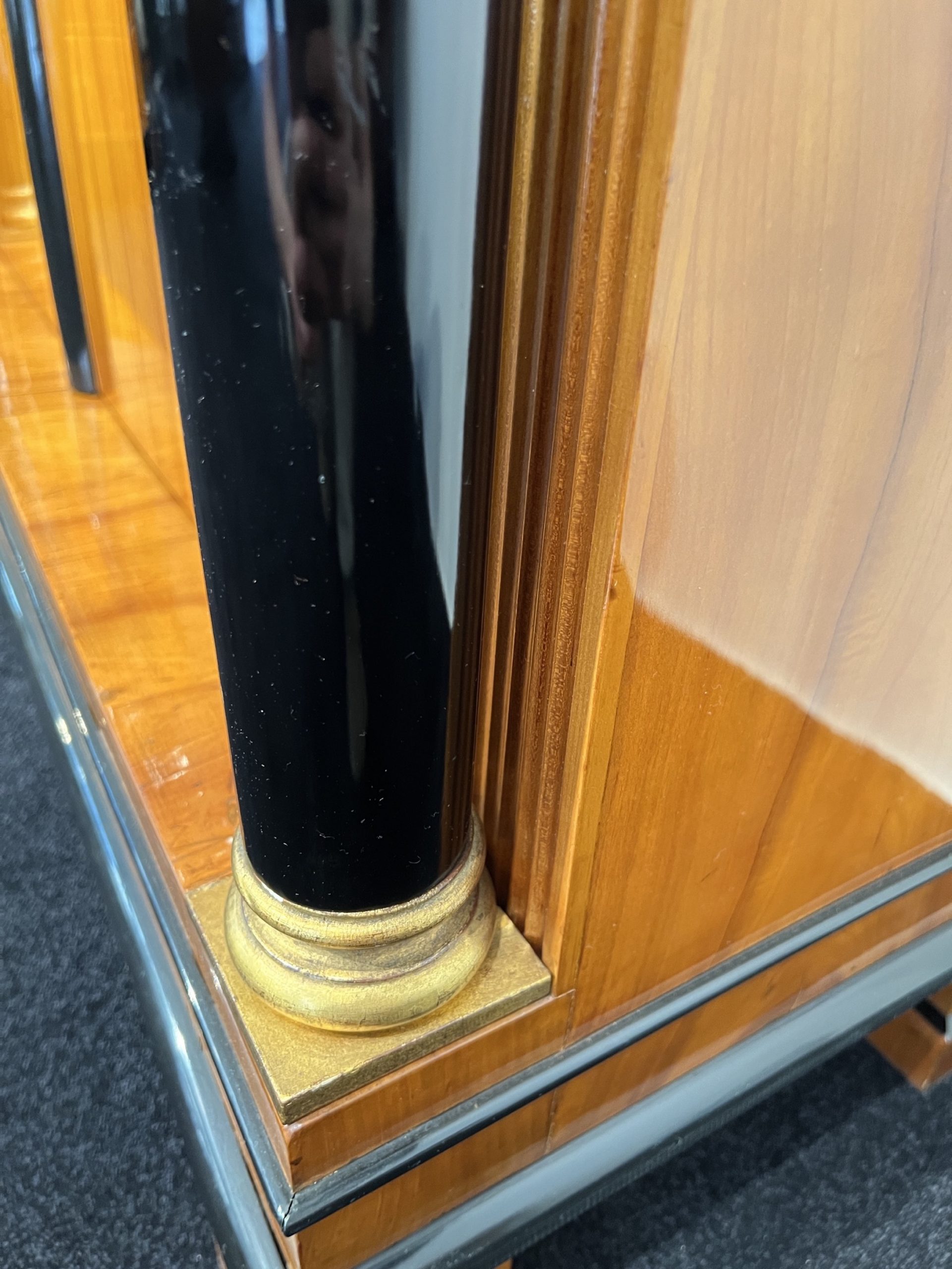 - Ebonisierte Vollsäulen mit korinthischen Kapitellen in Altvergoldung.