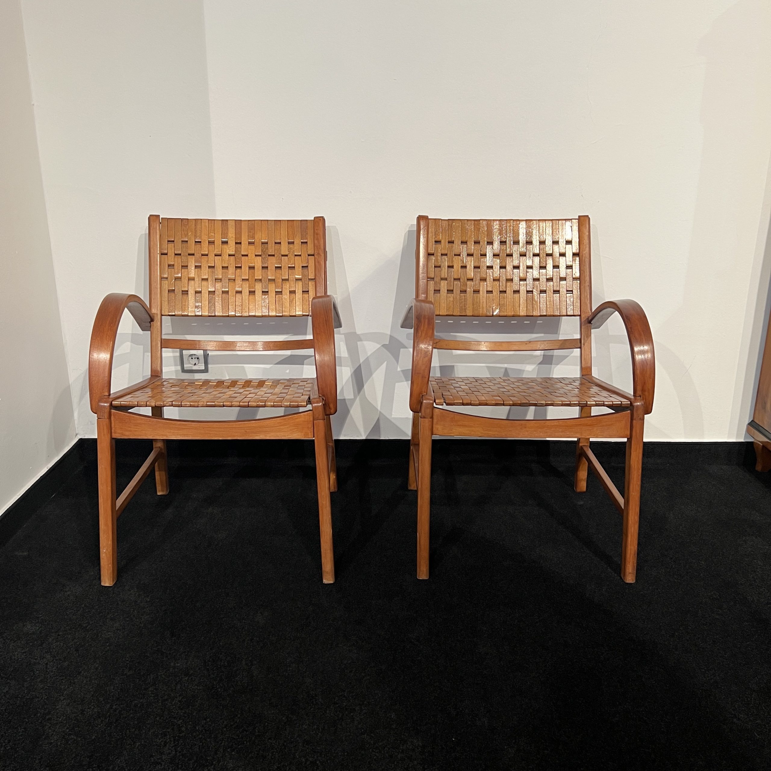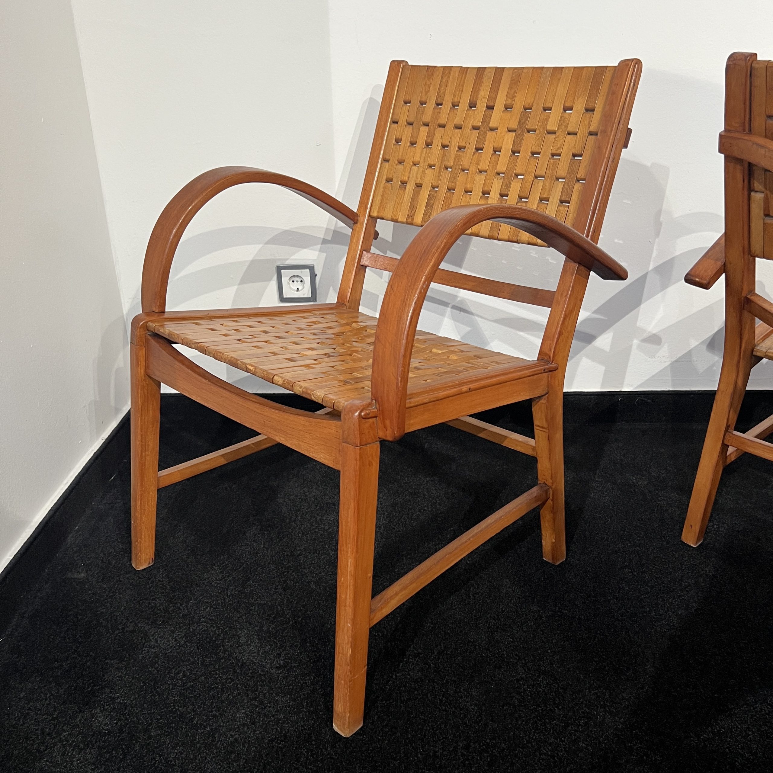 Schönes, restauriertes Paar Bauhaus / Mid-Century Armlehnstühle von Gelenka aus Deutschland um 1950.